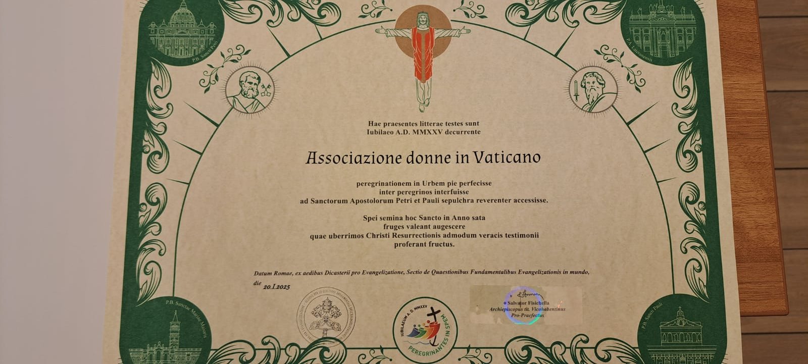 Atto di affidamento alla MadonnaIl 7 Aprile 2025 abbiamo affidato la nostra associazione a Maria Madre di Dio, della Chiesa e di tutti noi come inizio del cammino del nostro anniversario di fondazione che celebreremo tra un anno nel 2026.Frauen im Vatikan: Friedensgesten gefragt